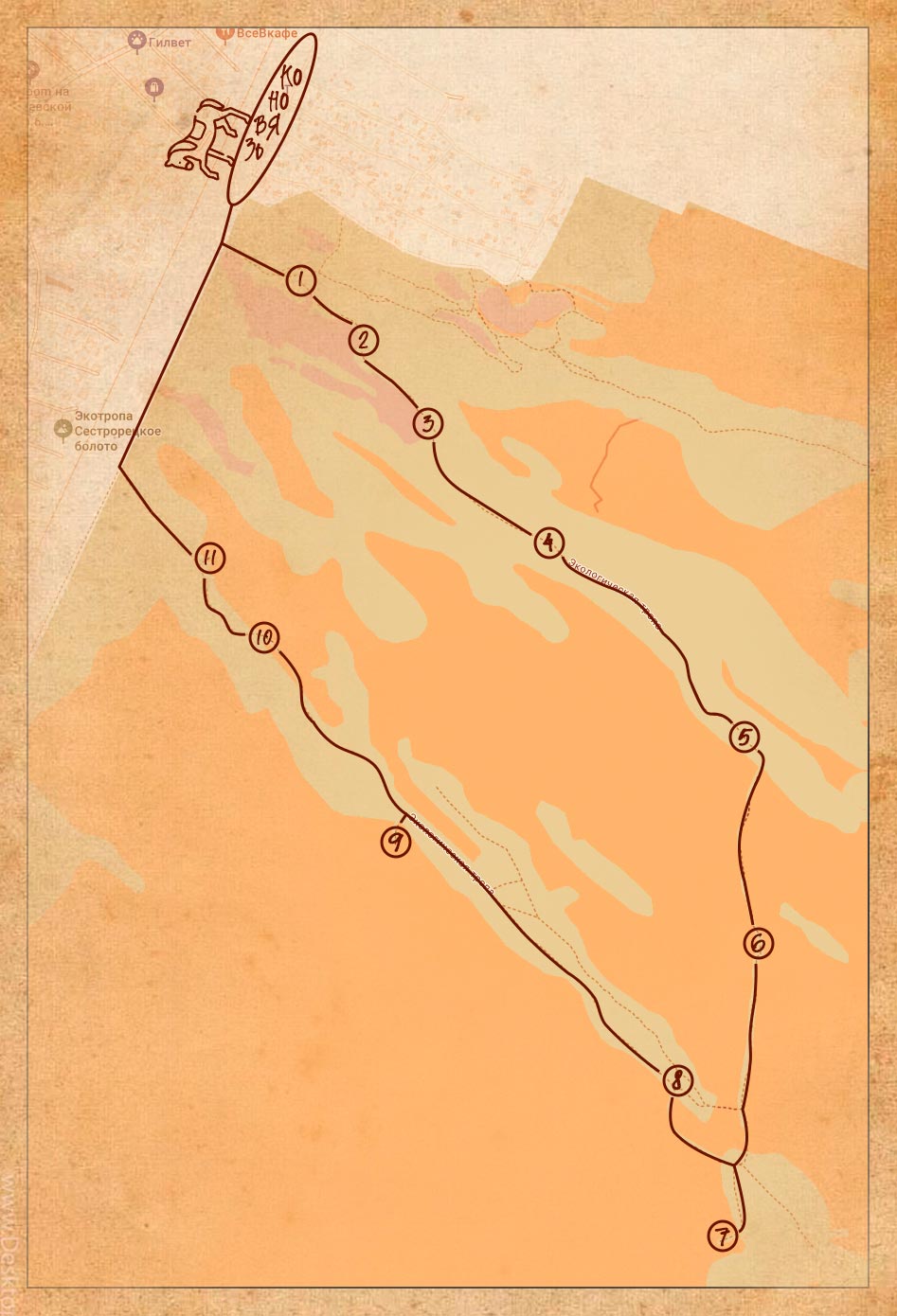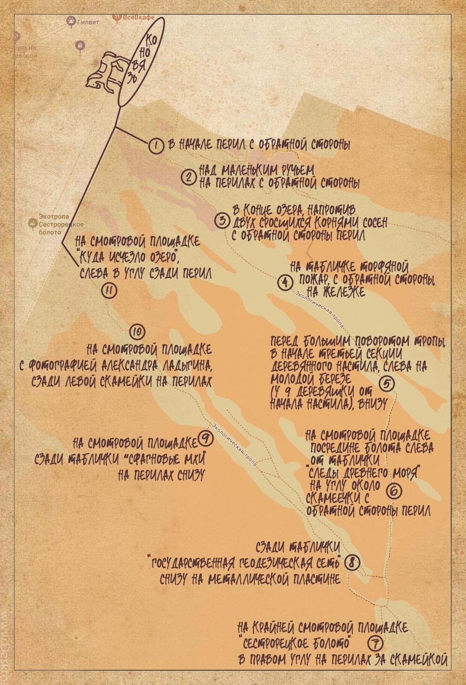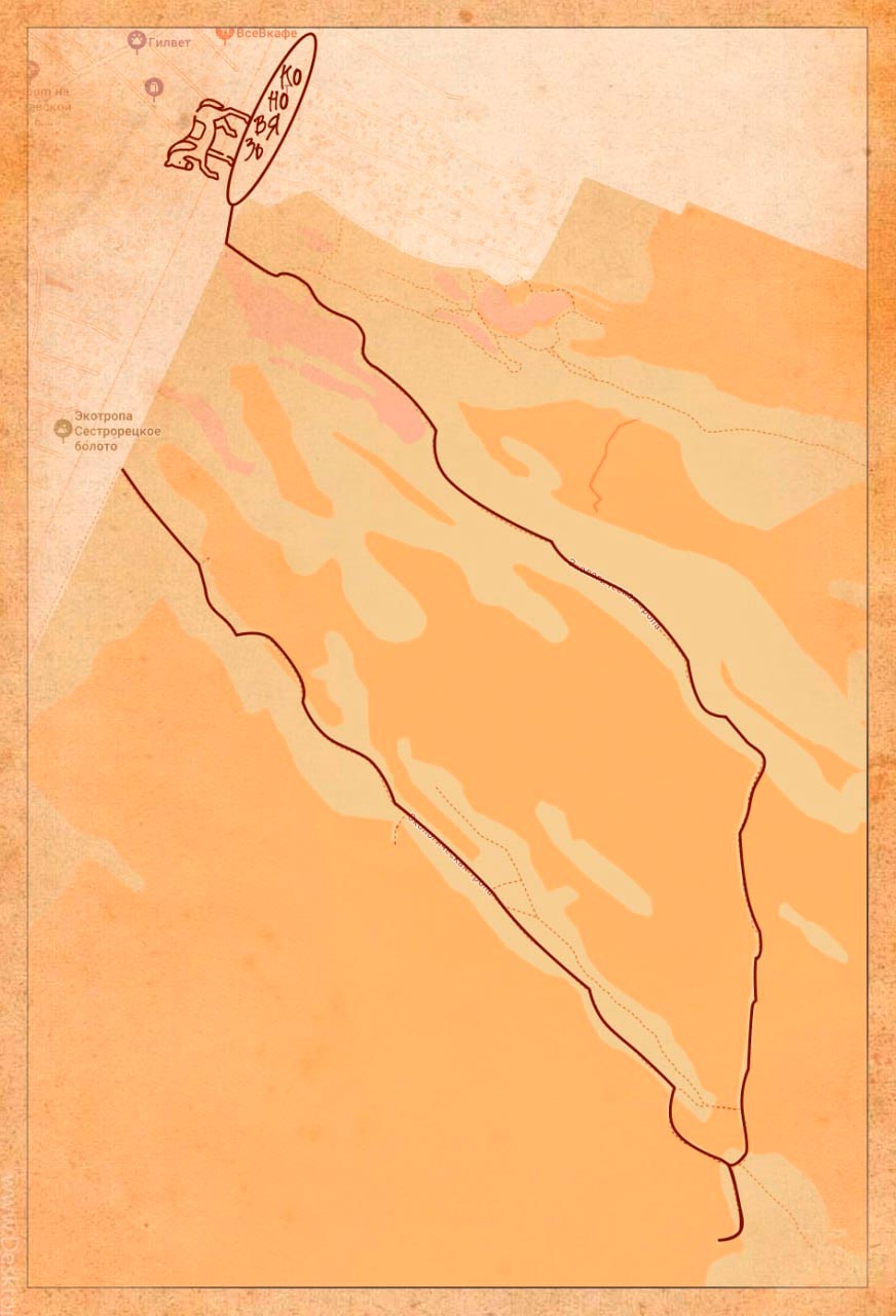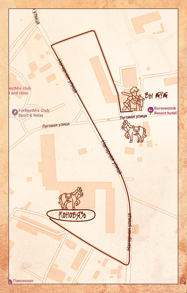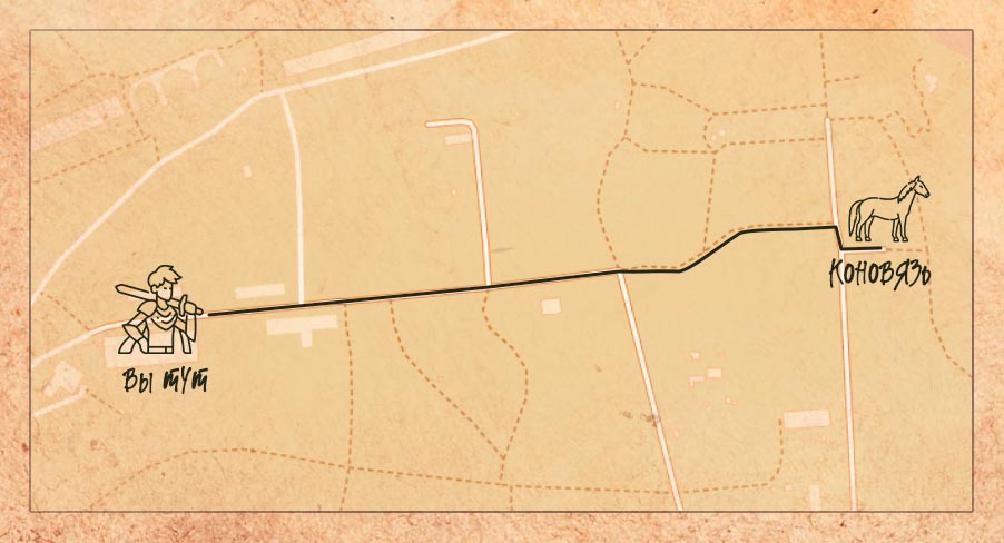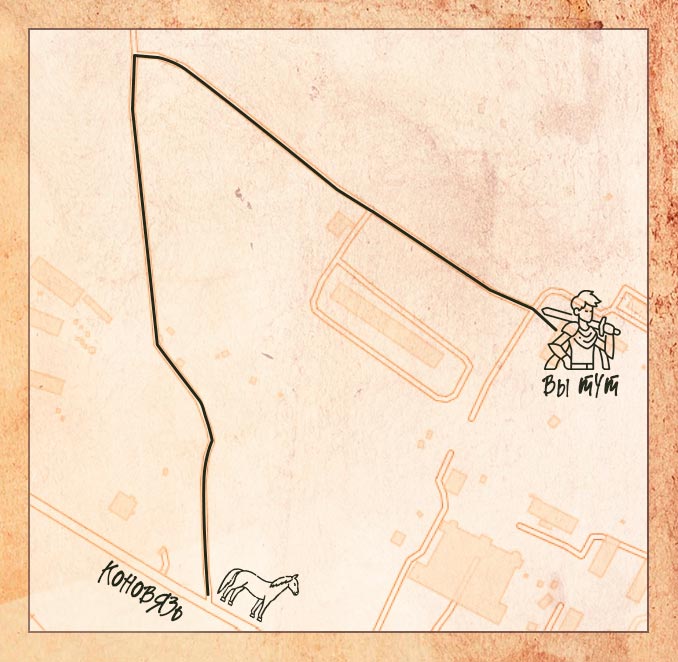 Путь до его хижины оказался не так прост, даже лошадь не смогла перебраться через этот бурелом, придется пойти пешком. У вас есть 10 минут, чтобы добраться по координатам: 59.952796, 29.555124 Код дохода синебород35 около ТП.