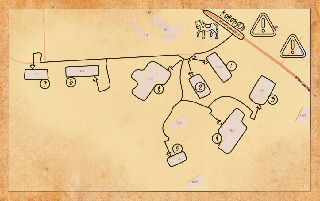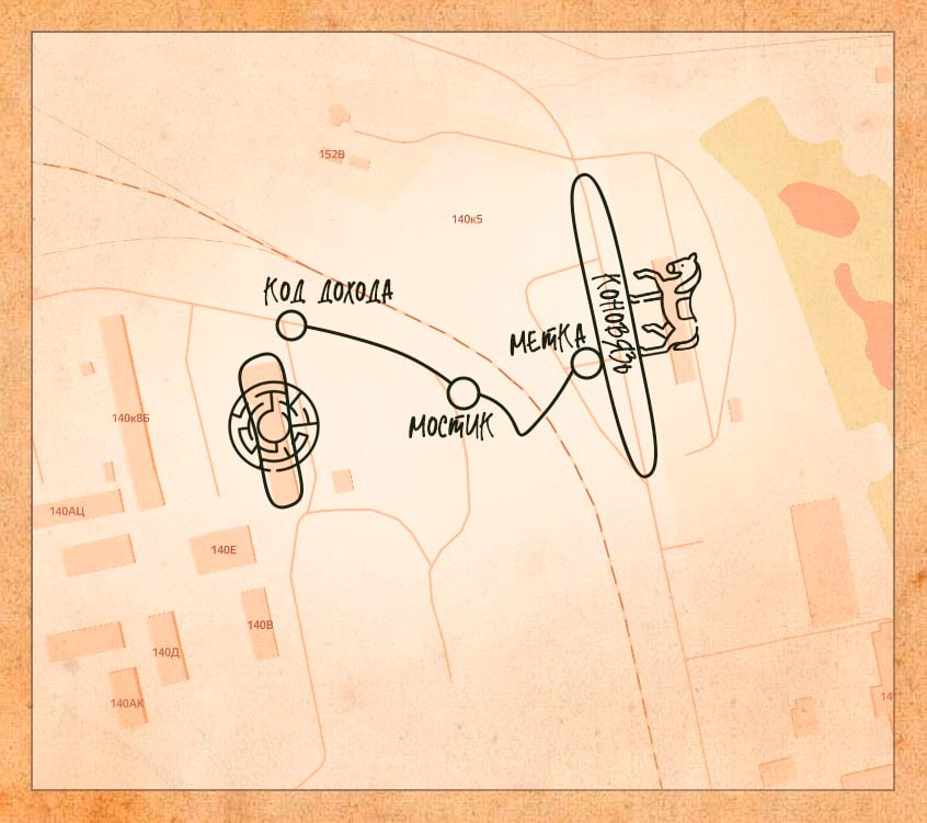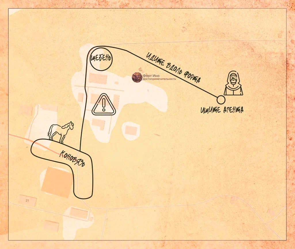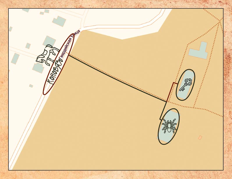 На соседнем столе вы нашли послание и смогли его перевести "сыграй в гвинт с хозяином соседнего трактира, обрати внимание как он постоянно разглядывает рисунки и текст на картах" Координаты локации: 60.180047, 29.489747 ФО: поймете в процессе Вся территория сталкер, везти себя тихо, фонари на минималках. Вход на локацию через дверь как на схеме, отмечен синей меткой W. Дверь за собой закрыть. Закройте уровень кодом сносуровня83