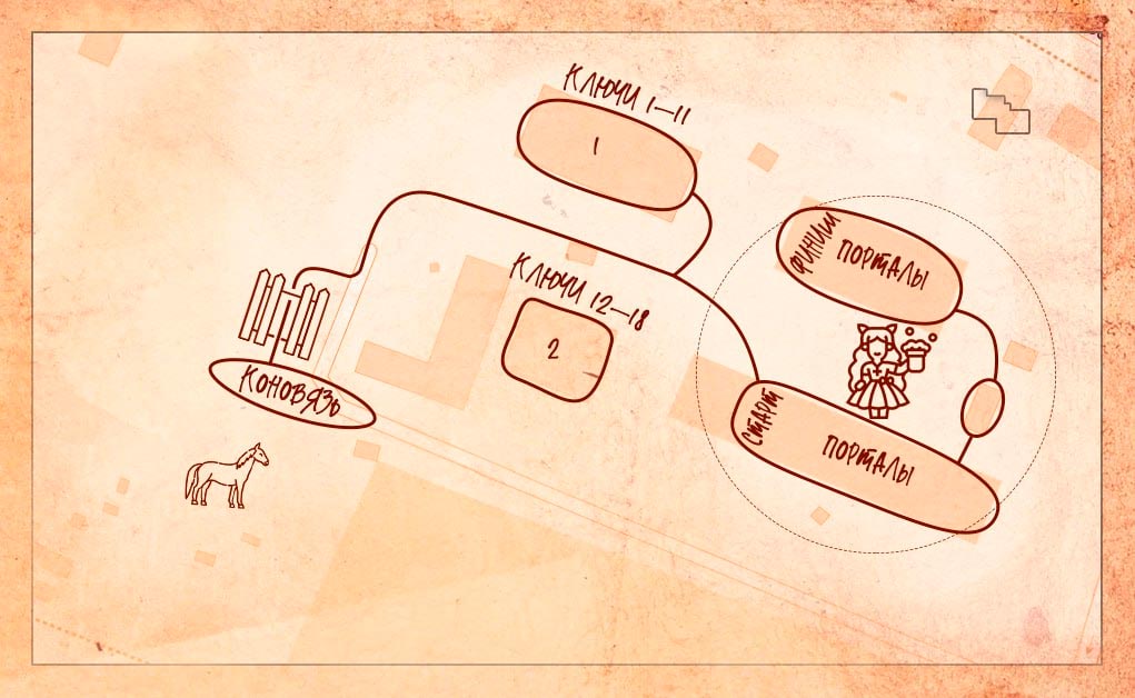 Рядом с хижиной вы встретили краснолюда Синеборода, который с радостью согласился перекинуться с вами партией в гвинт. Он непростой соперник - любит раскладывать карты и оценивать риски. Координаты локации: 59.951995, 29.554916 Играют только 3 и 4 этажи. Будьте аккуратны, в полу много порталов! Что искать: 28 безметочных кодов на 3 этаже и ключ на 4 этаже ФО: последовательность символов (буквы и цифры)