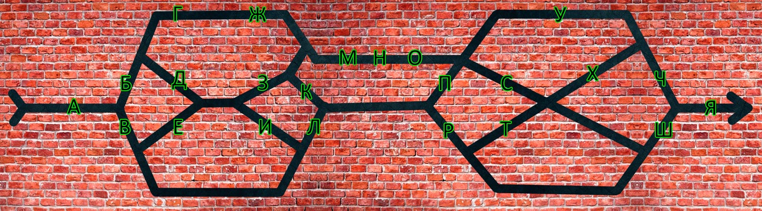 Риски - это не только неопределенные события, но ещё и отметки по периметру карт. The prompt #2 for all (25 minutes) Разложите карты в таблицу 7х4 согласно ключу. Обратите внимание на совпадающие риски по краям соседних карт. Все коды отписаны по порядку, в комнатах по кругу вокруг центрального коридора. The prompt #3 for all (35 minutes) Соедините две соседние клетки таблицы, если на границе между ними у карт совпала хотя бы одна риска. У вас должны нарисоваться 4 символа (цифра и три буквы)