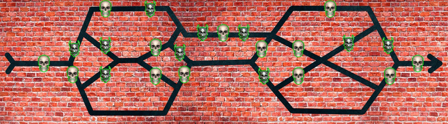 Мою пещеру захватили гоблины! Освободи ее от них и я покажу, где спрятано сокровище. Двигайтесь вдоль веревки (её цвет не играет). Когда находите красную ленточку, включайте ведьмачье зрение (УФ-фонари) и ищите следы (стрелочки), они приведут вас в тупик, где спрятан гоблин (УФ-код). Следите за порядком нумерации гоблинов, чтобы ни одного не пропустить. Внимание: -клаустрофобам вход категорически запрещен -у габаритных игроков тоже могут возникнуть проблемы -скорее всего, вы промочите ноги -берегите головы, хватит травм уже -не повредите веревку! -связь внутри отсутствует, записывайте найденную информацию и не забывайте вовремя ей поделиться -через 30 минут придут штрафные подсказки (по 5 мин штрафа), в которых будут коды