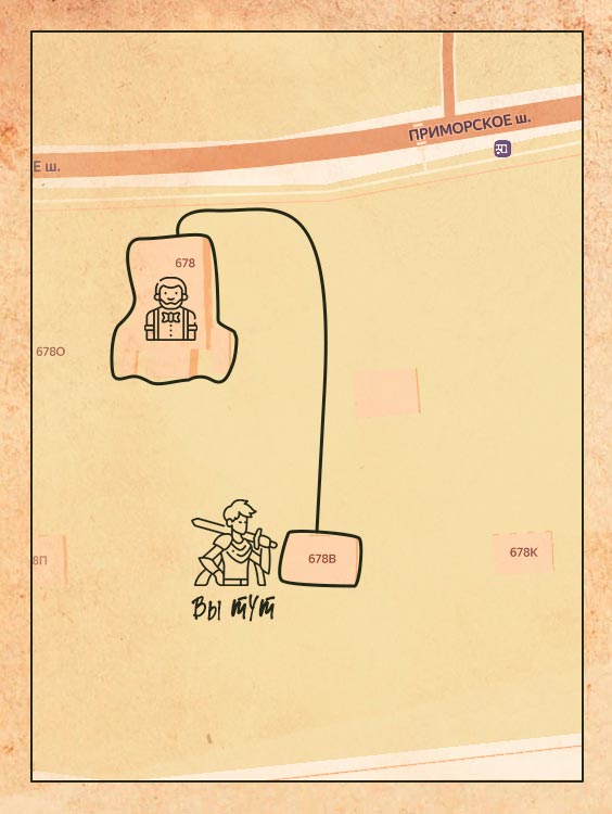 Что ж, ты готов - промолвил ведьмак. Я на твоей карте отметил место того монстра, с которым ты не смог справиться в начале своего пути. Сейчас у тебя есть все необходимые навыки и инструменты, чтобы одержать над ним победу. У вас есть 8 минут, чтобы доехать по координатам: 60.165417, 29.341329